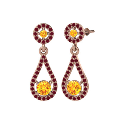 Sitrin ve kök yakut 8 ayar rose altın küpe