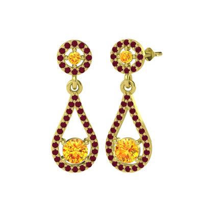 Sitrin ve kök yakut 925 ayar altın kaplama gümüş küpe