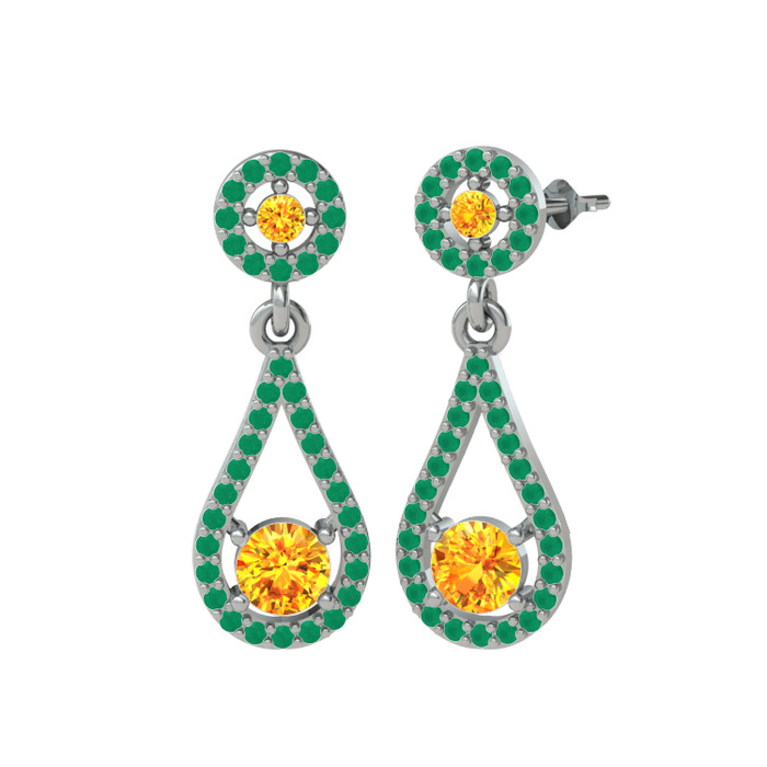 Sitrin ve kök zümrüt 14 ayar beyaz altın küpe