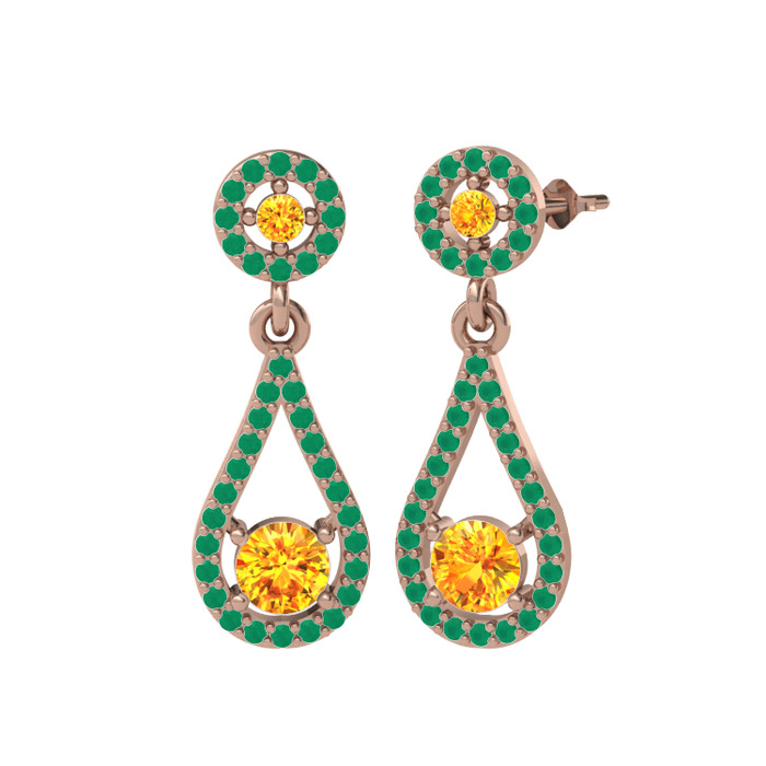 Sitrin ve kök zümrüt 925 ayar rose altın kaplama gümüş küpe