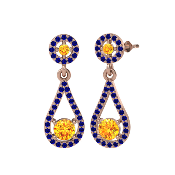 Sitrin ve lab safir 18 ayar rose altın küpe