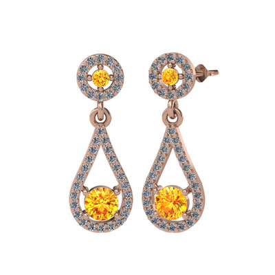 Sitrin ve pırlanta 8 ayar rose altın küpe (0.792 karat)