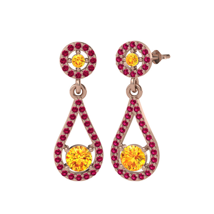 Sitrin ve rodolit garnet 14 ayar rose altın küpe