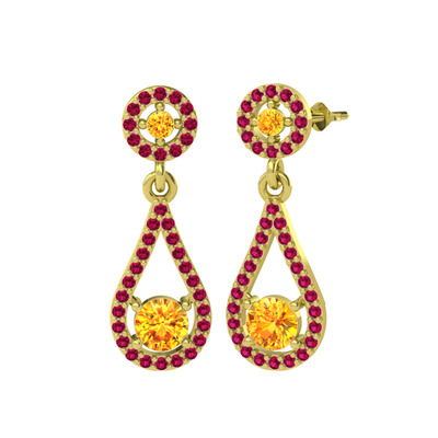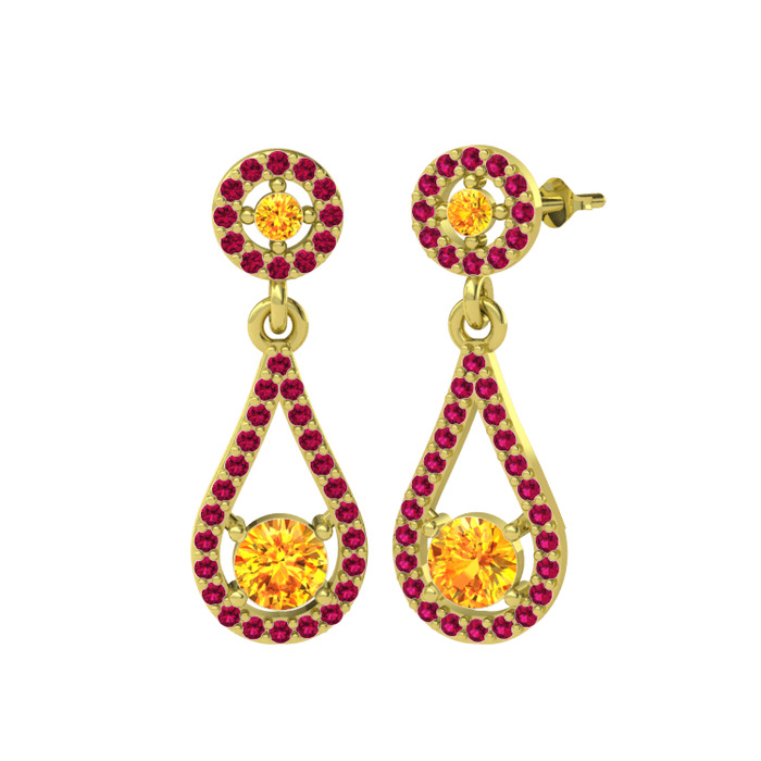 Sitrin ve rodolit garnet 925 ayar altın kaplama gümüş küpe