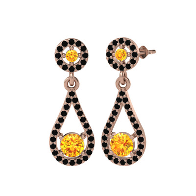 Sitrin ve siyah zirkon 8 ayar rose altın küpe