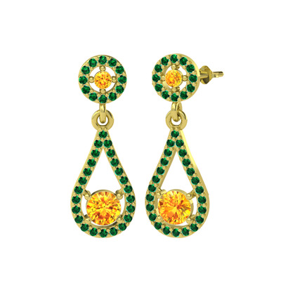 Sitrin ve yeşil kuvars 18 ayar altın küpe