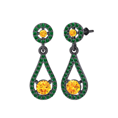 Sitrin ve yeşil kuvars 925 ayar siyah rodyum kaplama gümüş küpe
