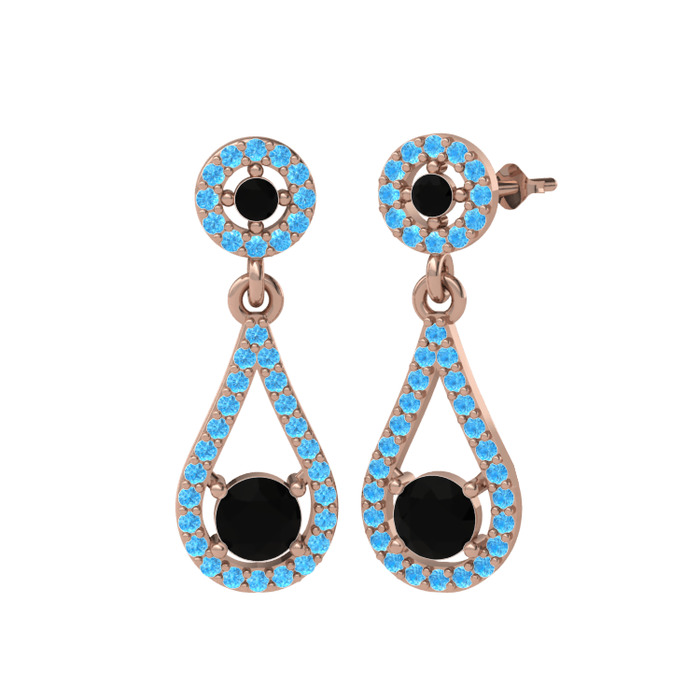 Siyah zirkon ve akuamarin 18 ayar rose altın küpe