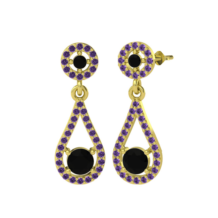 Siyah zirkon ve ametist 18 ayar altın küpe