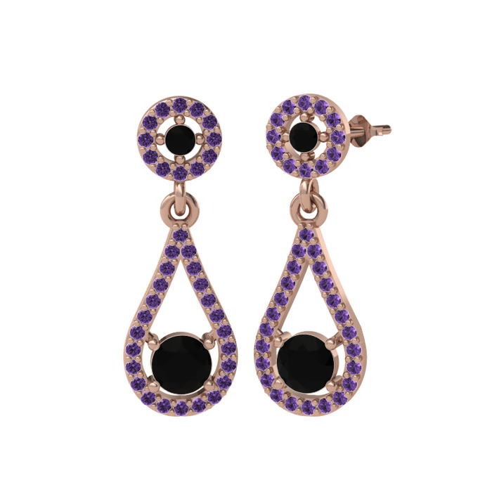 Siyah zirkon ve ametist 8 ayar rose altın küpe