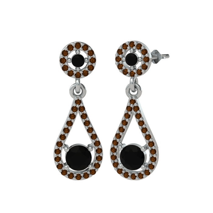 Siyah zirkon ve dumanlı kuvars 14 ayar beyaz altın küpe
