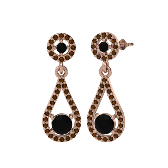 Siyah zirkon ve dumanlı kuvars 925 ayar rose altın kaplama gümüş küpe