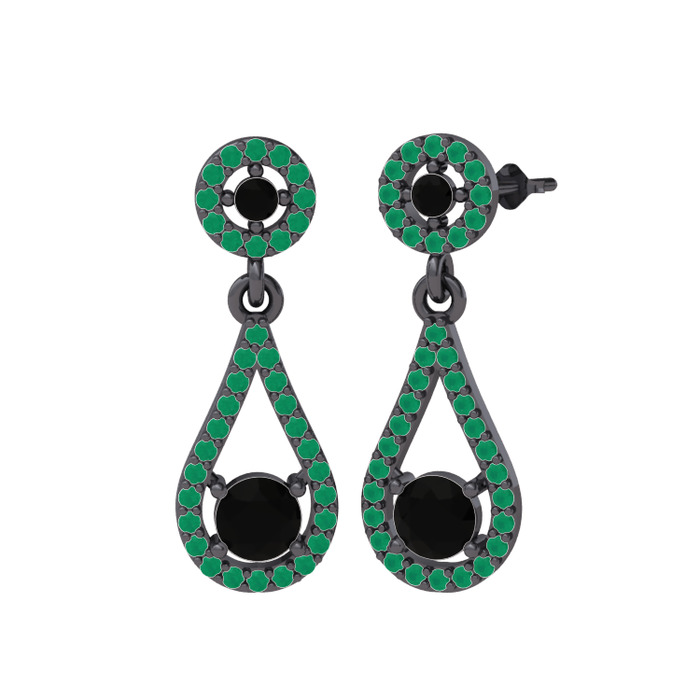 Siyah zirkon ve kök zümrüt 925 ayar siyah rodyum kaplama gümüş küpe