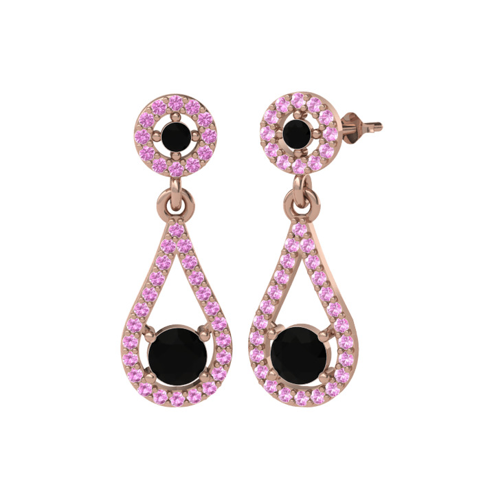 Siyah zirkon ve pembe kuvars 14 ayar rose altın küpe