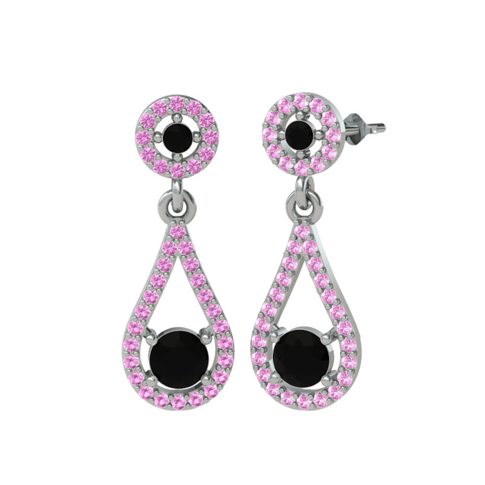 Siyah zirkon ve pembe kuvars 925 ayar gümüş küpe