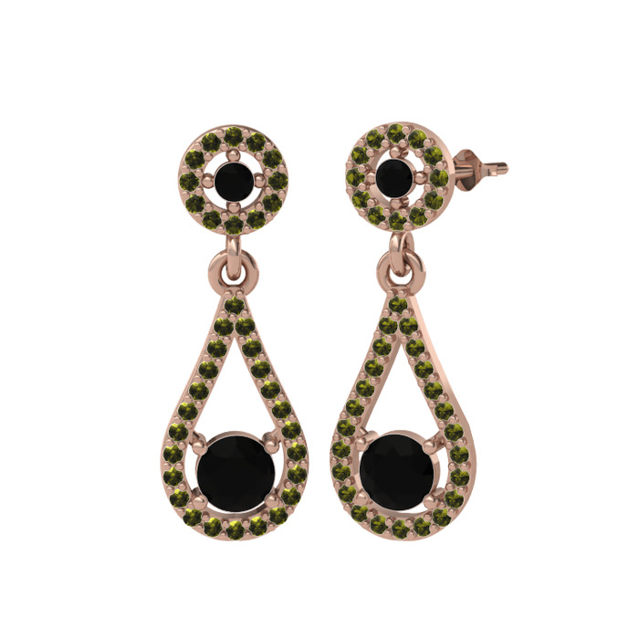 Siyah zirkon ve peridot 8 ayar rose altın küpe