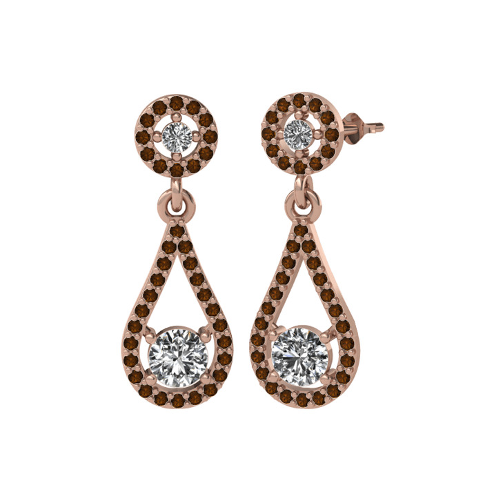 Swarovski ve dumanlı kuvars 8 ayar rose altın küpe