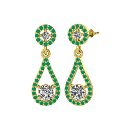 Swarovski ve kök zümrüt 14 ayar altın küpe