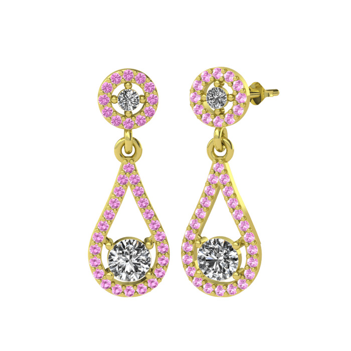Swarovski ve pembe kuvars 925 ayar altın kaplama gümüş küpe
