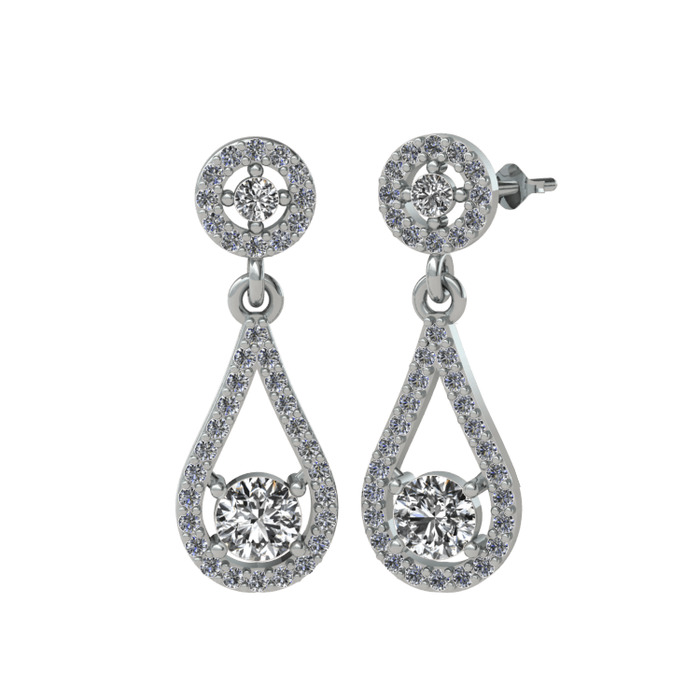 Swarovski ve pırlanta 8 ayar beyaz altın küpe (0.792 karat)