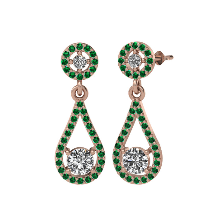 Swarovski ve yeşil kuvars 8 ayar rose altın küpe