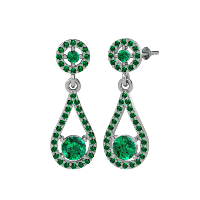 Yeşil kuvars 8 ayar beyaz altın küpe