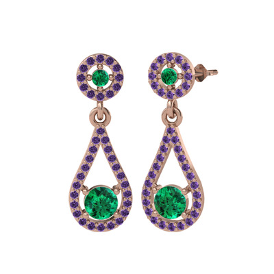 Yeşil kuvars ve ametist 14 ayar rose altın küpe
