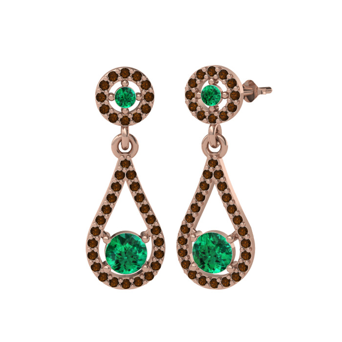 Yeşil kuvars ve dumanlı kuvars 18 ayar rose altın küpe