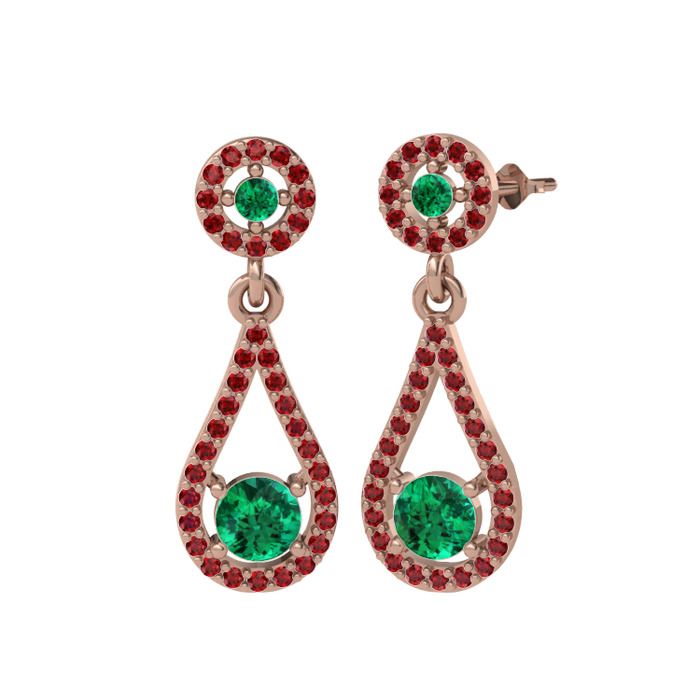 Yeşil kuvars ve garnet 18 ayar rose altın küpe