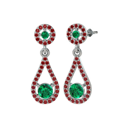 Yeşil kuvars ve garnet 8 ayar beyaz altın küpe
