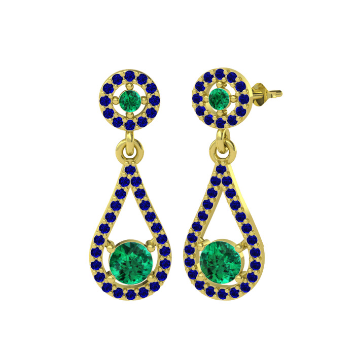 Yeşil kuvars ve lab safir 14 ayar altın küpe