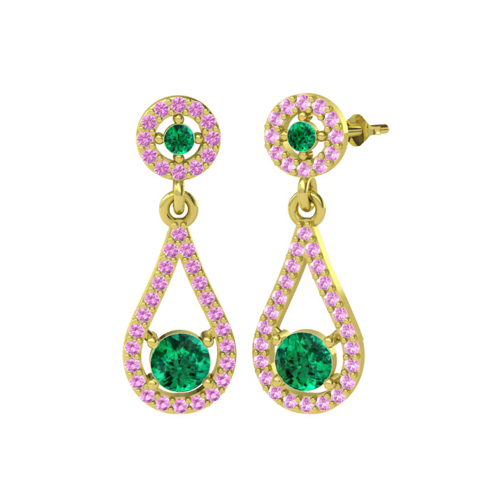 Yeşil kuvars ve pembe kuvars 14 ayar altın küpe