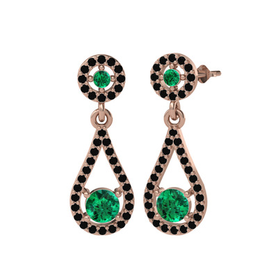 Yeşil kuvars ve siyah zirkon 18 ayar rose altın küpe