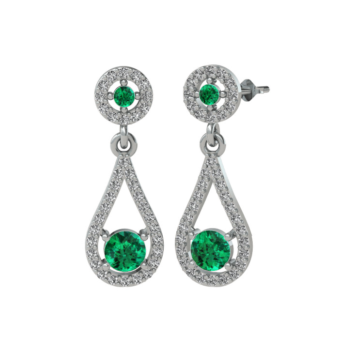 Yeşil kuvars ve swarovski 14 ayar beyaz altın küpe