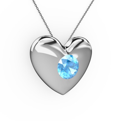 Akuamarin 14 ayar beyaz altın kolye (40 cm gümüş rolo zincir)