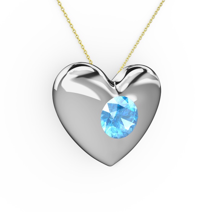 Akuamarin 18 ayar beyaz altın kolye (40 cm altın rolo zincir)