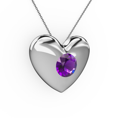 Ametist 14 ayar beyaz altın kolye (40 cm gümüş rolo zincir)