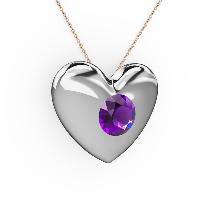 Ametist 14 ayar beyaz altın kolye (40 cm rose altın rolo zincir)