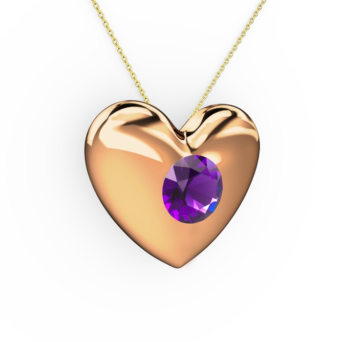 Ametist 8 ayar rose altın kolye (40 cm altın rolo zincir)