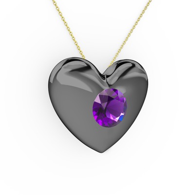 Ametist 925 ayar siyah rodyum kaplama gümüş kolye (40 cm altın rolo zincir)
