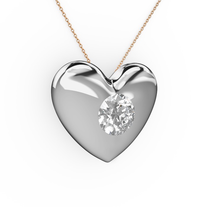 Beyaz zirkon 925 ayar gümüş kolye (40 cm rose altın rolo zincir)