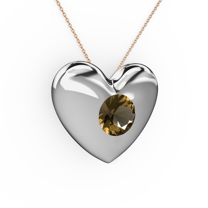 Dumanlı kuvars 925 ayar gümüş kolye (40 cm rose altın rolo zincir)
