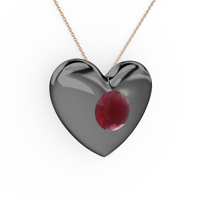 Kök yakut 925 ayar siyah rodyum kaplama gümüş kolye (40 cm gümüş rolo zincir)
