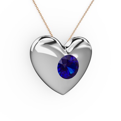 Lab safir 925 ayar gümüş kolye (40 cm rose altın rolo zincir)