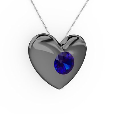 Lab safir 925 ayar siyah rodyum kaplama gümüş kolye (40 cm beyaz altın rolo zincir)