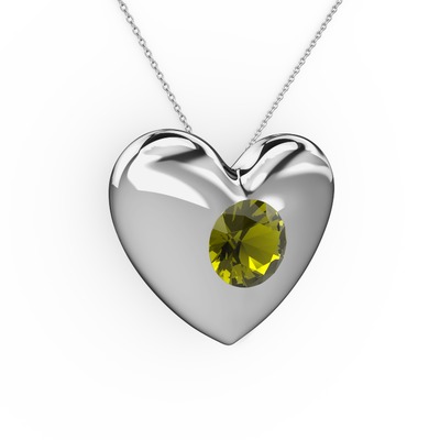 Peridot 14 ayar beyaz altın kolye (40 cm beyaz altın rolo zincir)