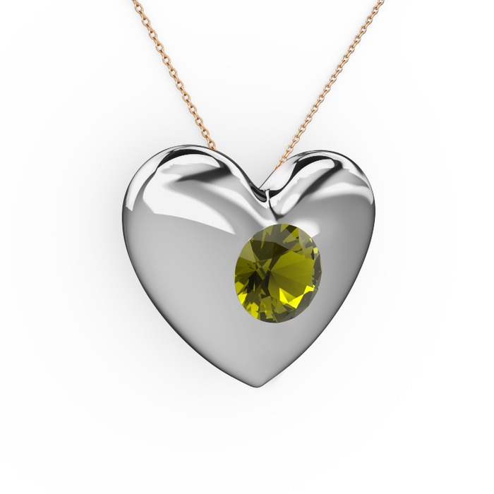 Peridot 14 ayar beyaz altın kolye (40 cm rose altın rolo zincir)