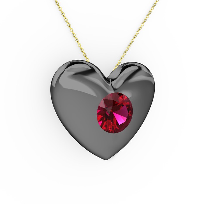 Rodolit garnet 925 ayar siyah rodyum kaplama gümüş kolye (40 cm altın rolo zincir)