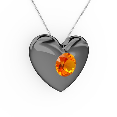 Sitrin 925 ayar siyah rodyum kaplama gümüş kolye (40 cm beyaz altın rolo zincir)