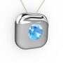 Akuamarin 925 ayar gümüş kolye (40 cm rose altın rolo zincir)